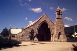 Thurling, John.All Saints' Ainslie Exterior From Parish Hall 15/3/61. Church of England Historical Society (Diocese of Sydney). 1961. Retrieved from the Atla Digital Library, https://archives.moore.edu.au/documents/detail/111785.